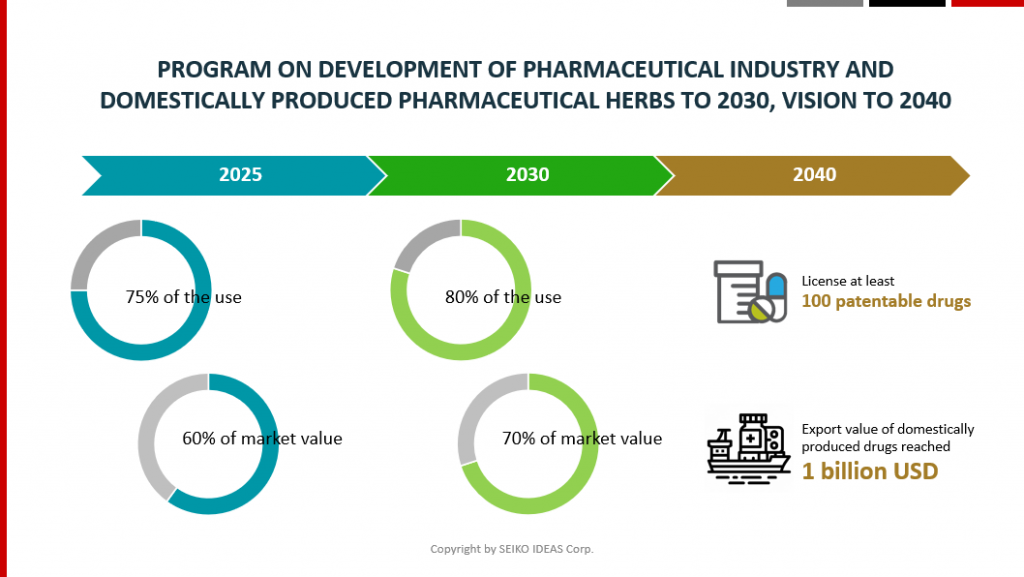 – Program on development of pharmaceutical industry and domestically produced pharmaceutical herbs to 2030, vision to 2040